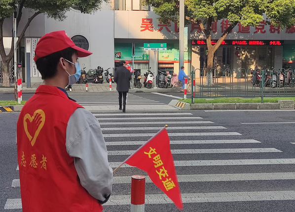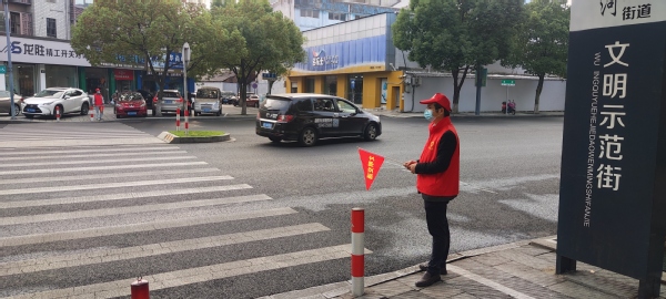 此次活动中,杨建民和吴凡两位党员老师充分发挥党员先锋模范带头作用,身着红马甲,戴小红帽,手持交通文明劝导旗,时刻保持着装整洁,动作规范、精神饱满的状态。除此之外,他们积极配合执勤交警劝阻、纠正“行人不走人行横道、行人横跨护栏、电动自行车不戴头盔”等十类交通违法行为,营造良好的交通环境。