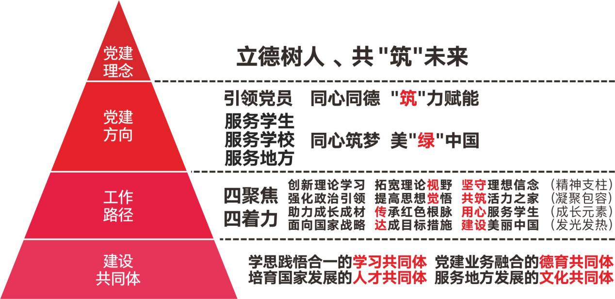 支部聚焦视觉传达设计专业高质量人才培养目标,在增强支部“筑绿先锋 设计赋能”底色的基础上,将理论学习、实践教育与学生发展需求充分结合,服务学生、服务学校、服务地方,培养学生融入国家发展战略和地方生态经济发展的责任感和内驱力,打造了“两山”理念引领+筑绿先锋+专业促建党支部,为高水平应用型人才培养提供了强大支持。