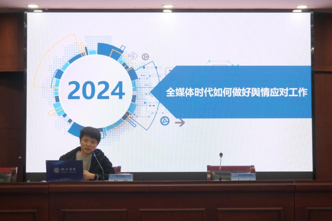 培训期间,邀请湖州市委党校马列教研室主任胡义清教授和湖州市互联网舆情中心副主任杨帅进行授课,他们分别以《牢牢掌握党对意识形态工作领导权》为题,介绍意识形态工作的定义、由来和高校意识形态工作领导权的重要性;以《全媒体时代如何做好舆情应对工作》为题,从舆论传播平台、舆论风险提示、网上舆情应对处置三个方面,深入解读了高校面临的网络舆情隐患和应对措施。结合培训主题,立足班主任工作实际,培训班学员分组研讨并进行交流汇报。