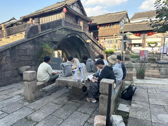 立足设计类专业实践课程特点,为着力培养高质量应用型人才,2025年9月,设计学院2024级视觉传达设计专业的同学们在胡天琪、黄剑峰、罗敬邦、林妍四位专任教师的带领下,开展了一场为期十天的沉浸式艺术写生课程。本次写生行程丰富,依次走进了历史悠久的新市古镇、湖州学院新校区、闻名遐迩的南浔古镇以及文化底蕴深厚的鄣吴镇,将课堂搬到实景之中,在实践中锤炼专业技艺,感悟地方文化。