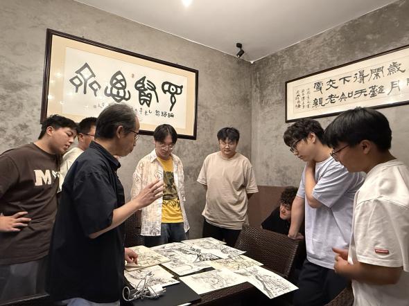 在整个写生过程中,同学们展现了极高的学习热情。他们或坐或立,细心观察,努力抓取每个地点的独特景物与神韵,将课堂所学的构图、透视、色彩知识灵活运用于实践。四位指导老师则不辞辛劳,穿梭于学生之间,进行一对一的悉心指导,从取景角度、技法运用到意境表达,给予了精准的点评和示范,帮助学生解决创作中遇到的实际问题。