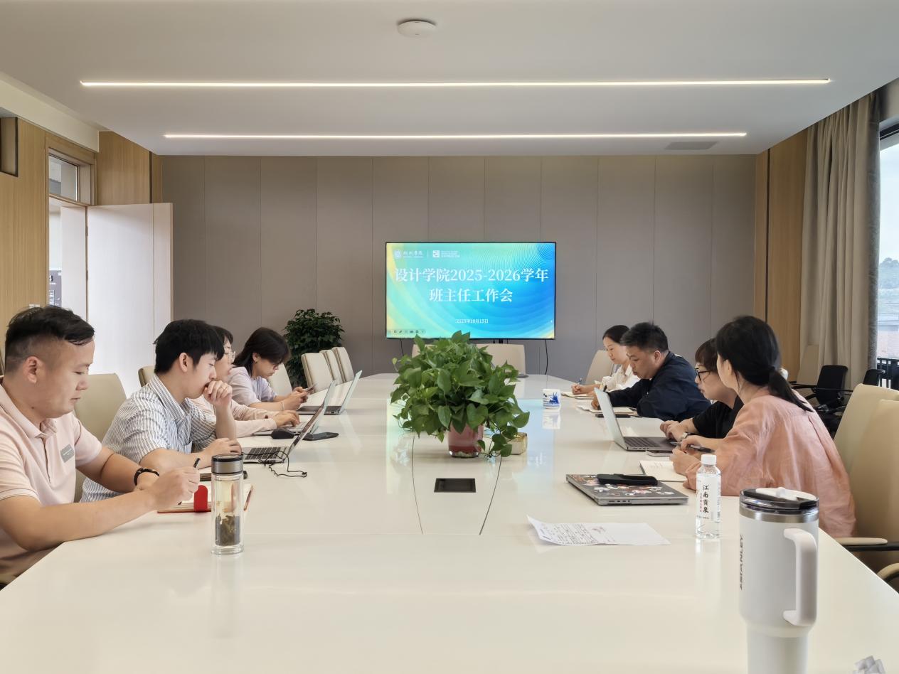 为进一步统筹推进学院人才培养质量提升,精准落实考研指导与毕业生就业服务工作,设计学院于10月15日下午在4-513会议室召开班主任工作专题会议。学院党总支副书记邓剑刚出席会议。学工办副主任侯怡如、系主任及2026届、2027届毕业班班主任参会。