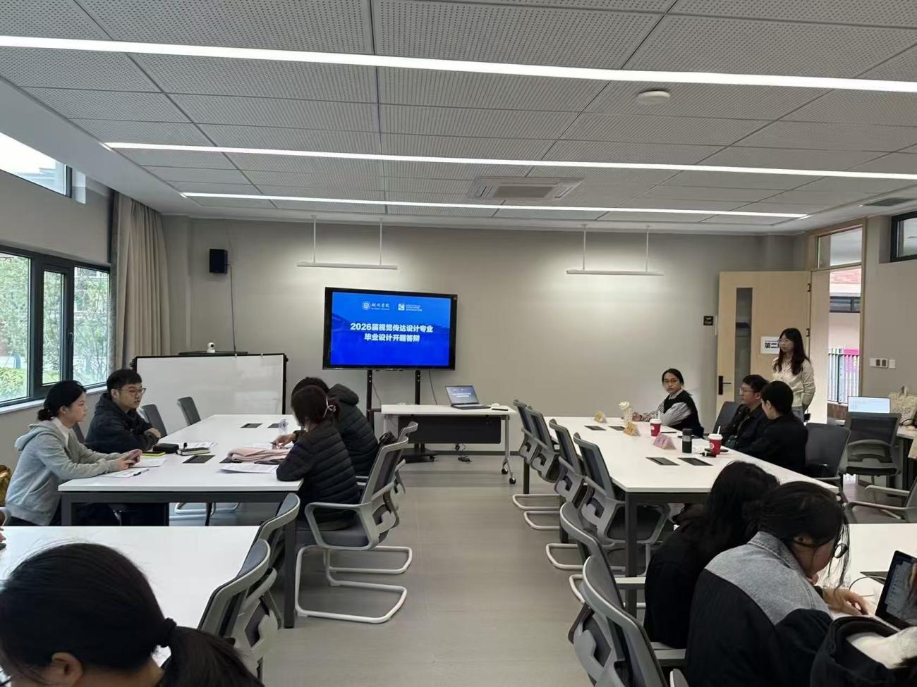 2025年10月25日,视觉传达设计专业师生在设计学院教学楼举行了2026届视觉传达设计系2026届毕业生开题答辩会,参加本次答辩的学生共72人,教师15人,由尹长根、陈竑、艾红、彭虹、林妍五位教师担任答辩组组长。