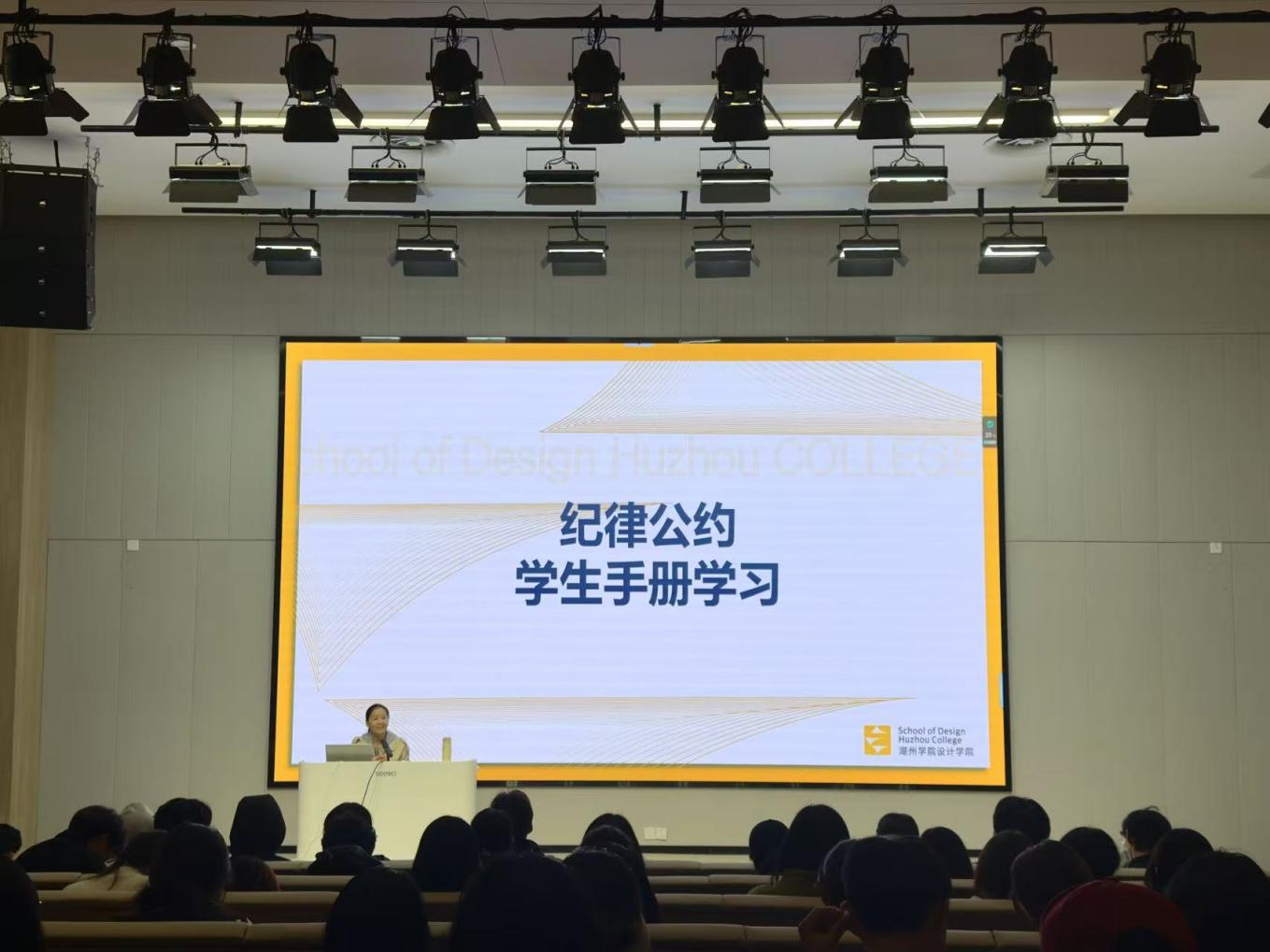 为引导2025级新生顺利适应大学环境,规划学业生涯,夯实成长基础,11月3日以来,设计学院在4号楼4KXR演播厅组织开展新生始业教育系列活动。2025级全体新生参会,活动由学工办副主任侯怡如老师主讲。