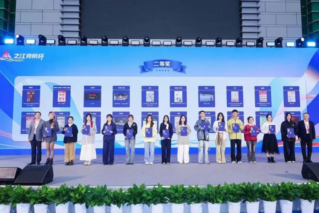 2025年10月24日,浙江省第十三届“之江竞帆杯”版权创意设计大赛的颁奖典礼在宁波国际会展中心隆重举行,我院2023级视觉传达设计专业陈思涵、杨欣悦同学共同创作的作品《湖光武韵——十八般武艺文创设计》,经过多轮激烈角逐,从全省95所高校选送的4705件优秀作品中脱颖而出,荣获大赛二等奖,充分展现了我院学子的专业实力与创新风采。
