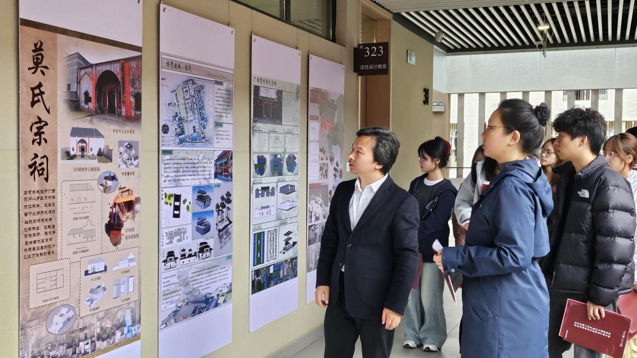 11 月 21 日上午,湖州学院设计学院 “南岭走廊传统村落祠堂文物文献史料征编与研究” 数字古建成果展正式开展。本次展览以 “南岭走廊、文化宝库”为主题,依托国家社科基金项目研究内容将大二软件课程内容与实际课题相结合,通过 CAD绘图、SU 建模、D5 三维渲染等多种制图形式立体解构了南岭走廊传统村落祠堂的建筑之美、文化之韵与历史之重。