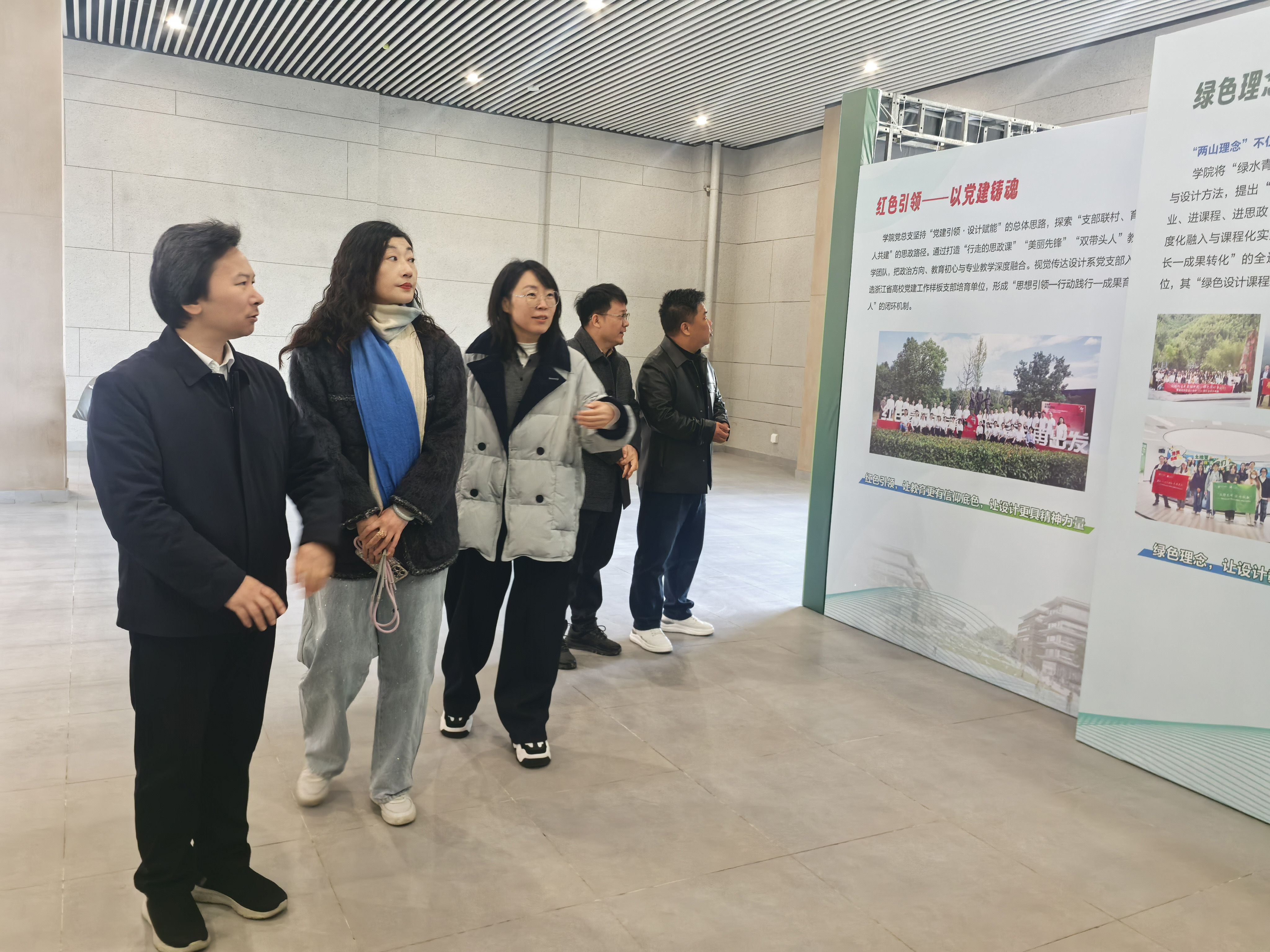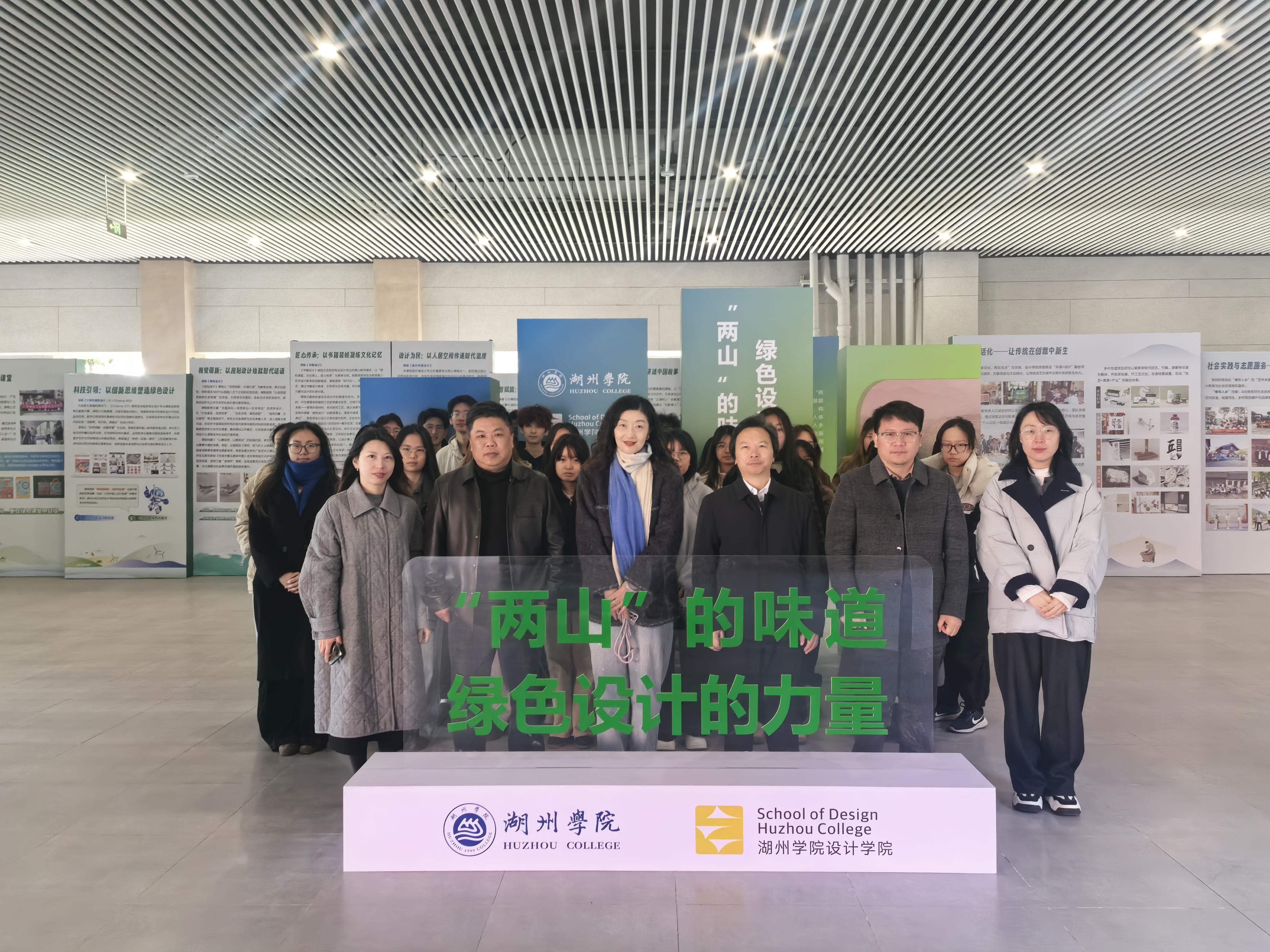 2025年11月25日,湖州学院设计学院举行“两山”的味道绿色设计的理念课程思政展,学院校领导及学院师生共同参观此次展览。湖州学院设计党总支书记朱亚莉、院长毛攀云、副院长尹长根、党总支副书记邓剑刚等领导与部分教师、学生代表一同出席活动。
