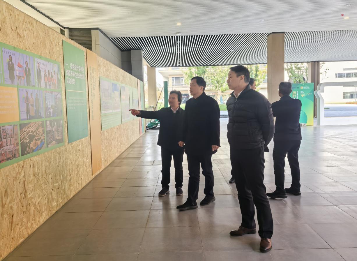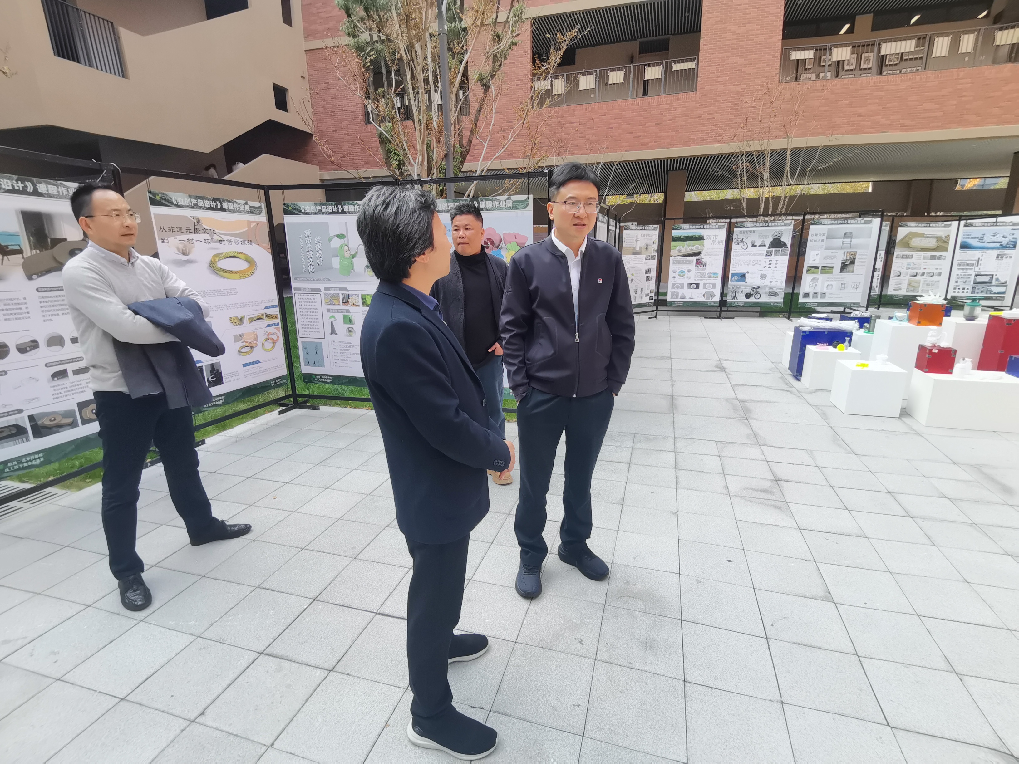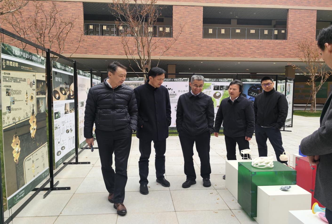 近日,湖州学院党委书记金波、校长马志和,党委副书记鲁伟权、党委副书记唐华、党委组织部施静龙等校领导及有关部门负责人一行莅临设计学院“兴湖州”三年行动成果展现场视察指导,学院领导班子及相关负责人陪同参观,共同见证设计学科扎根湖州、服务地方的丰硕成果。