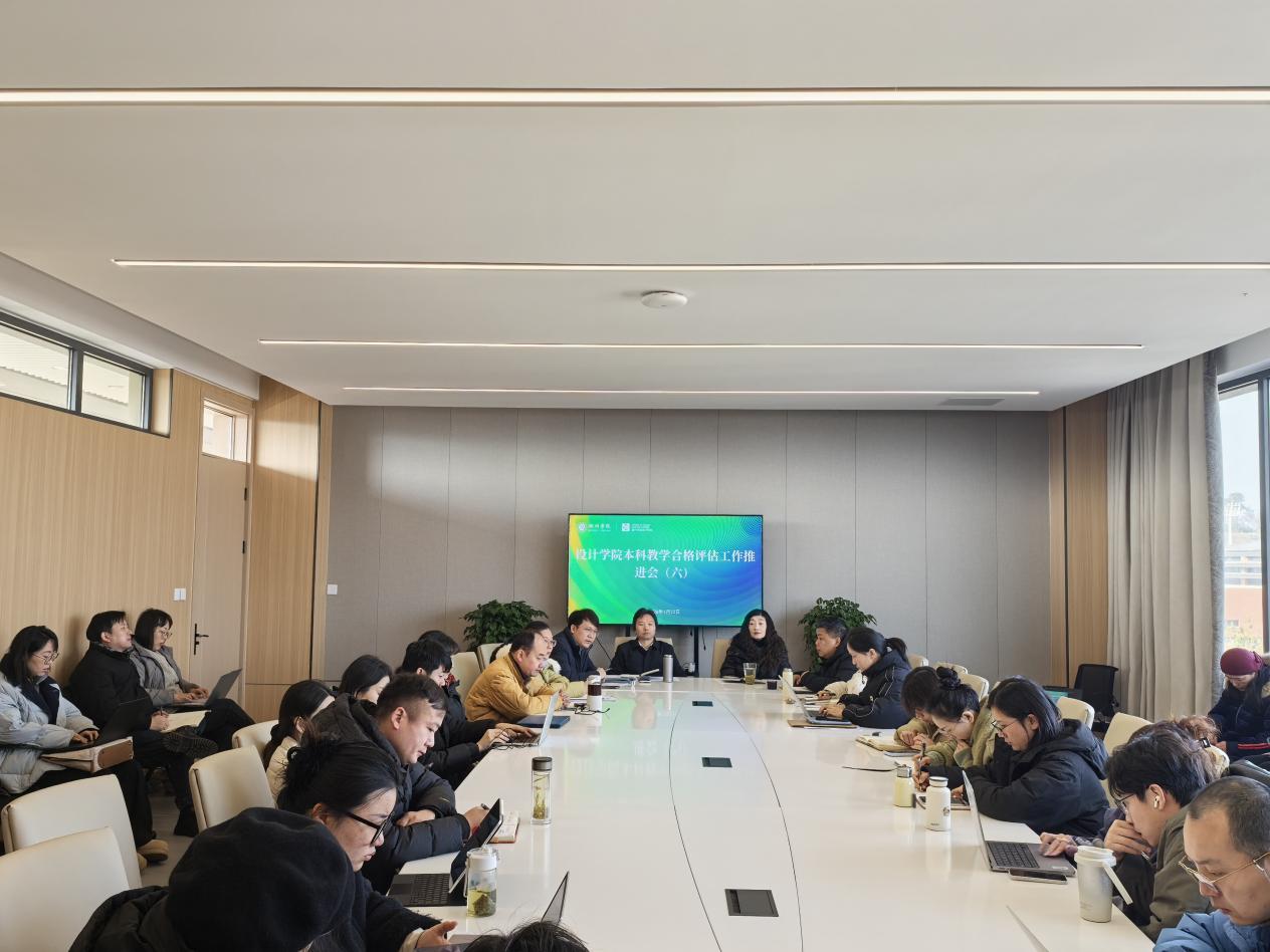 2026年1月23日,设计学院在4号楼513会议室召开本科教学合格评估工作第六次推进会,全面总结本学期评估工作成效,安排部署下一阶段重点任务。学院领导班子成员、全体教师参加会议,会议由教学副院长尹长根主持。